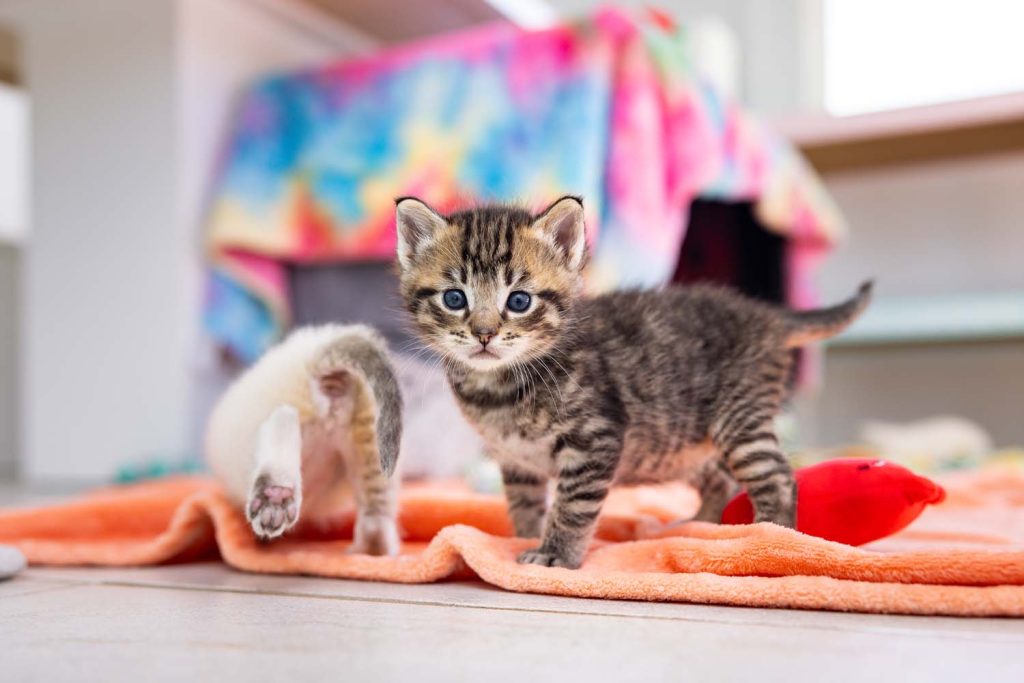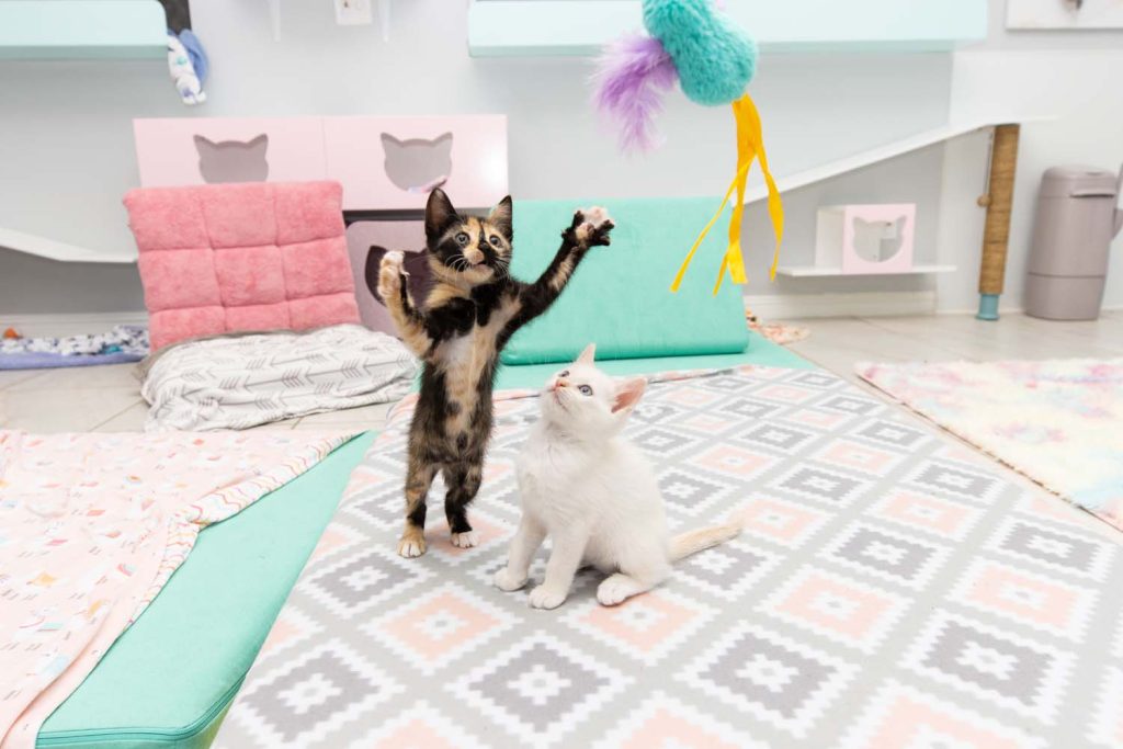 Raised with expert care and constant, attentive support in the safety of our incubators, these kittens are given the strongest possible start. As they grow, they transition into our kitten clubhouse: a beautiful space designed to help kittens learn, grow, build confidence, and develop the social skills they need to thrive in loving homes. As a result, at adoption age our kittens are healthy, resilient, deeply affectionate, and ready for lifelong companionship.